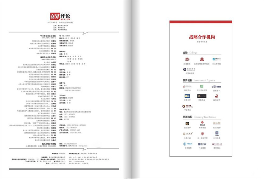 它是商界传媒有限公司所创办的一本高端商业管理类杂志,自创刊以来,已成为行业内备受尊敬和广泛关注的知名品牌。作为中国第一本深入研究微观经济和企业问题的商业评论杂志,它旨在为企业家和管理者提供最前沿的商业思想和最佳实践,帮助他们更好地领导和管理企业,实现商业成功。